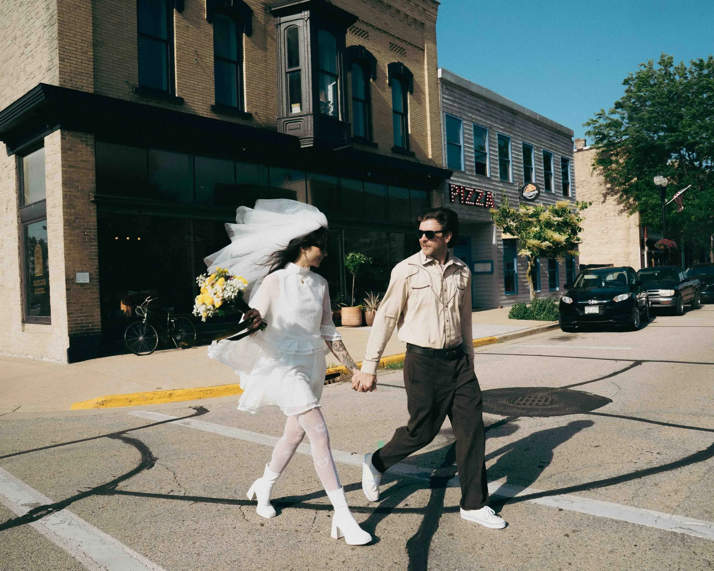 Bride & Groom Portraits at the Parlor Hotel, Princeton, WI